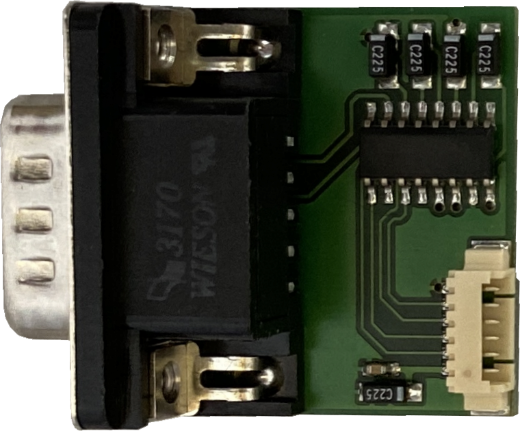 Die Baugruppe RS-232 ist optimal auf die Baugruppen OSDxs/xsc/xxs abgestimmt und bietet einen normgerechten COM-Port RS-232 zur Verbindung mit Computern. Hierzu ist im OSD die Schnittstelle freizuschalten. Der OSD ist vollständig über die Schnittstelle steuer- und konfigurierbar. Die Baugruppe ist für eine Frontplattenmontage mit D-Sub 9polig M vorgesehen. Zur Verbindung mit dem PC genügt ein Null-Modem-Kabel (TxD/RxD und CTS/RTS). Auch die Nachrüstung und Freischaltung älterer OSD ist möglich.