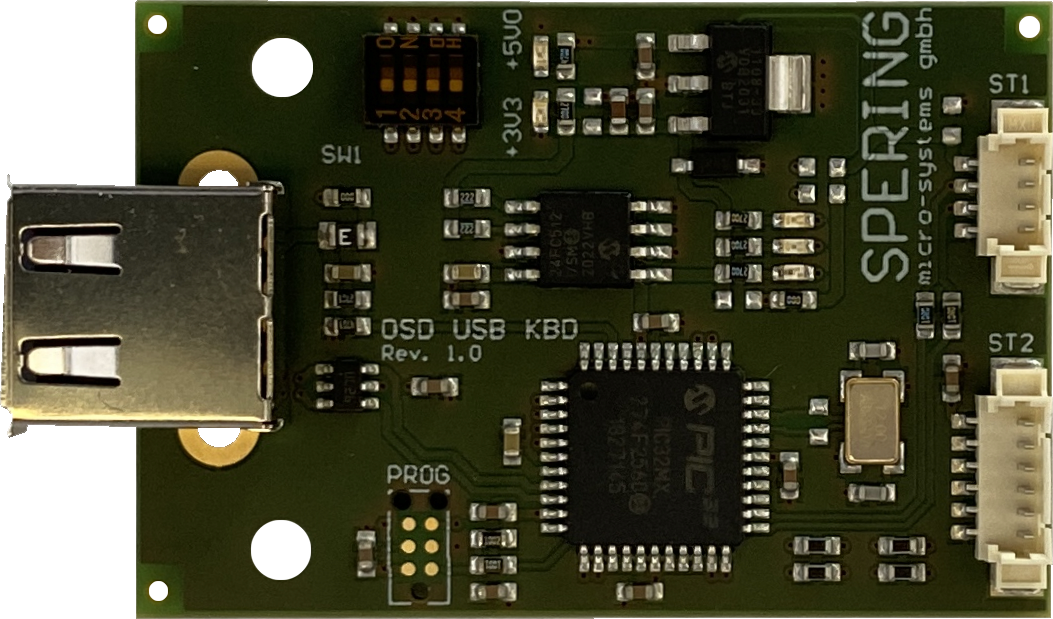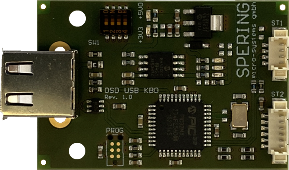 Die Baugruppe OSD USB KBD ist optimal auf den OSDcck 3.0 abgestimmt und bietet ein vollständiges HID-Interface für USB-Tastaturen aus dem PC-Bereich. Alle Tastatur-Funktionen werden unterstützt. Die Baugruppe ist für die direkte Frontplattenmontage mit USB-Buchse Typ A vorgesehen. Auch eine Nachrüstung älterer OSDcck 3.0 ist nach Softwareupdate und minimaler Umrüstung möglich.